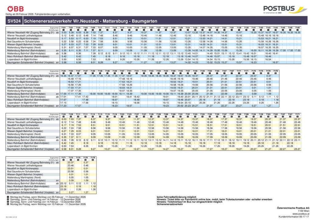- Wiener Neustadt ↔ Loipersbach-Schattendorf: Hier verkehren Ersatzbusse.